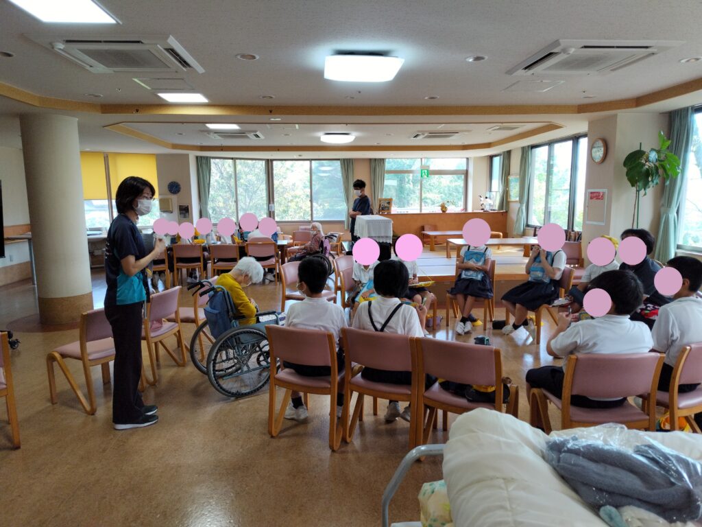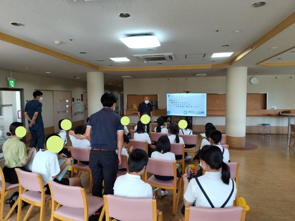 説明を行いました。その後、2グループに分かれて被爆体験をされたご入居者様との交流を行いました。