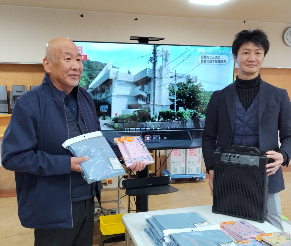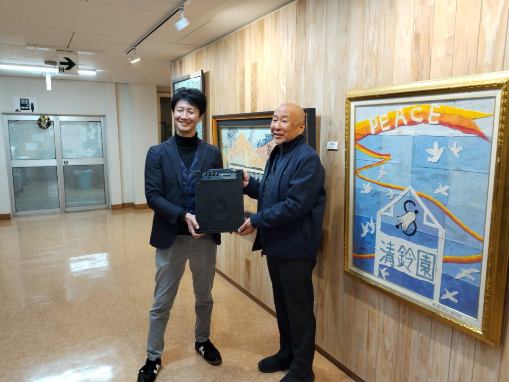 また、皆さまで寄付金を募ってくださり、体重計、スピーカー付きマイクセット、エプロン、防水シーツを